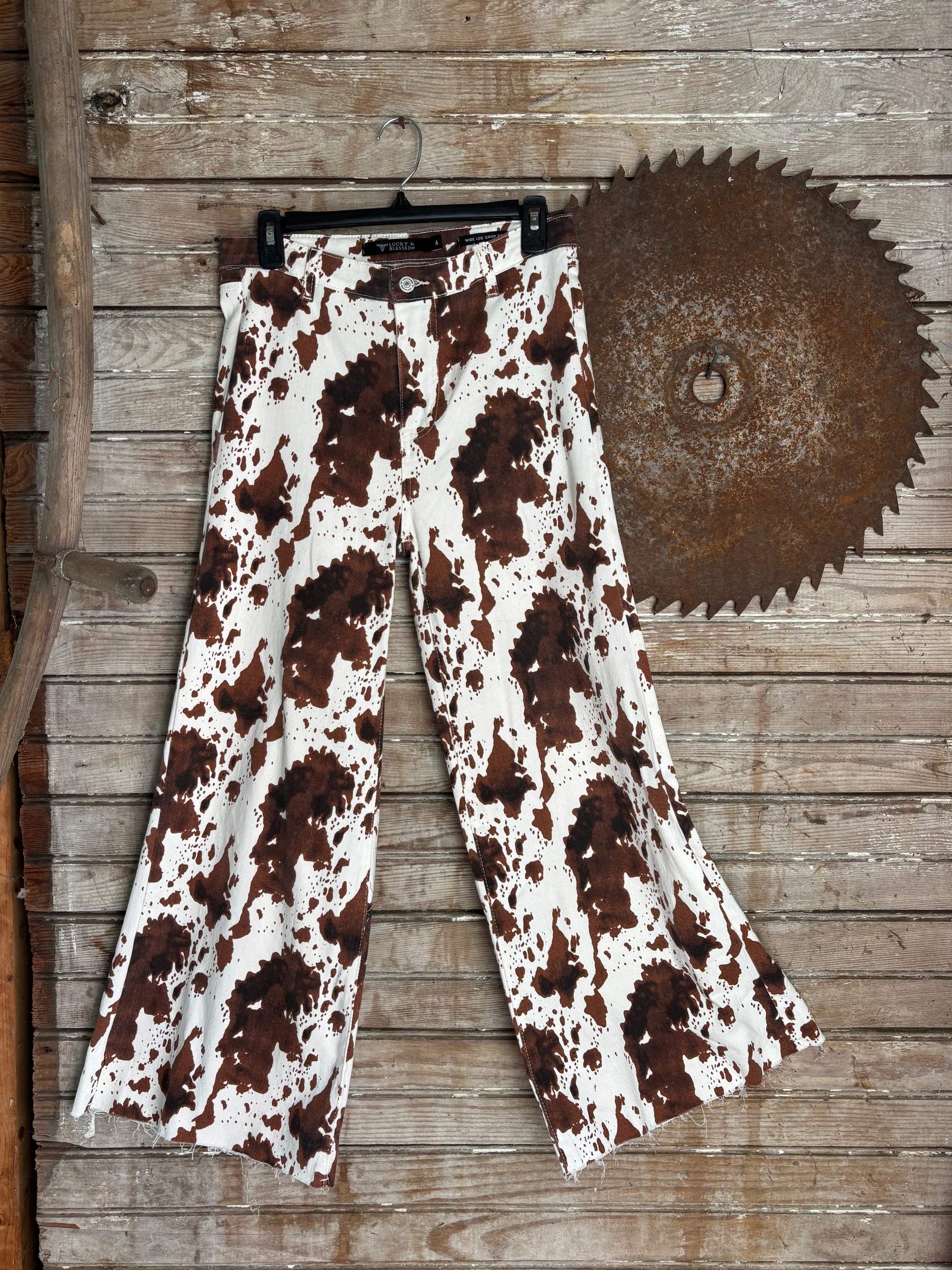 Super comfy cowprint, high rise jeans.  Tummy control...butt shaping...gap control waistband with reinforced belt loops.  Back pockets, no pockets in front.